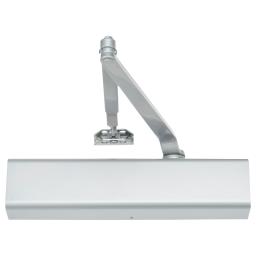 Grade 1 Cast Aluminum Surface Mount Closer, Size 1-6 Adjustable, Double Lever Arm with Parallel Bracket, Non-Handed, Slim Plastic Cover, Aluminum Painted Finish