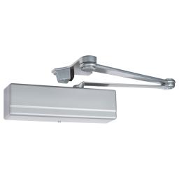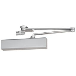 Grade 1 Parallel Arm Surface Closer, Push Side, Parallel Arm Heavy Duty Stop, Spring Stop, Full Plastic Cover, 100 Deg. Swing, Spring Cush-n-Stop Arm, Aluminum Painted Finish, Non-Handed