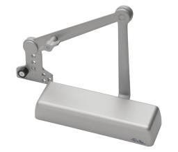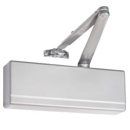 Grade 1 Surface Door Closer, Hold Open Cush Arm, Push Side Mounting, 110 Degree Swing, Adjustable Size 1-6, Plastic Cover, Aluminum Painted Finish, Non-Handed