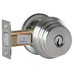 Grade 2 Single Cylinder Deadbolt, Keyed Outside/Thumbturn Inside, 6-Pin Cylinder, 12-288 Latch, 10-094 Strike, 1-3/8" - 1-7/8" Door Thickness, Satin Chrome Finish