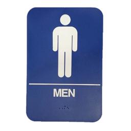 A.D.A. Sign, Men, Rectangle, 6" Wide by 9" High, Raised Lettering, White on Blue