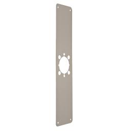 Remodeler Plate, 5" by 14", 2-1/8" Hole near Bottom, Prepped for Thru-bolts, Simplex (L)1000 Back to Plain Cylindrical Lock, Satin Stainless Steel Finish