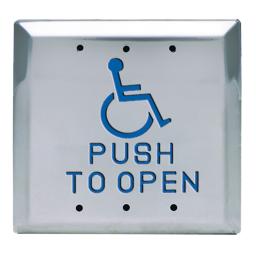 4-1/2" x 4-1/2" Square Push Plate Switch, Push to Open, Blue Infill