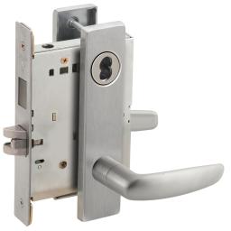ANSI Grade 1 Heavy Duty Low Escutcheon Mortise Lock, Artistic Lever, Single Cylinder Dormitory with Deadbolt, SFIC Prep, Less Core, Satin Stainless Steel