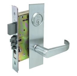 ANSI Grade 1 Heavy Duty Low Escutcheon Mortise Lock, Imperial Lever, Single Cylinder Dormitory/Exit, Schlage C keyway, Satin Chrome
