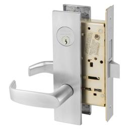 ANSI Grade 1 Heavy Duty Low Escutcheon Mortise Lock, Imperial Lever, Single Cylinder Dormitory/Exit, Schlage C keyway, Satin Chrome