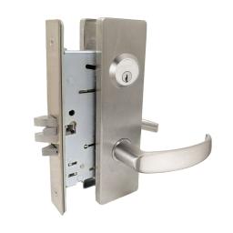 ANSI Grade 1 Heavy Duty Low Escutcheon Mortise Lock, Quest Lever, Single Cylinder Classroom, Schlage C keyway, Satin Stainless Steel