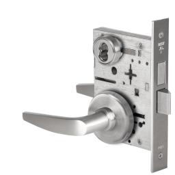 ANSI Grade 1 Heavy Duty Low Sectional Mortise Lock, Artistic Lever, Double Cylinder Intruder Deadbolt, SFIC Prep, Less Core, Satin Chrome