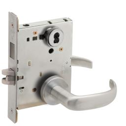 ANSI Grade 1 Heavy Duty Low Sectional Mortise Lock, Quest Lever, Single Cylinder Dormitory/Exit, SFIC Prep, Less Core, Satin Stainless Steel